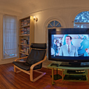 indoor, moody, living room, TV screen, framed artwork, Hollywood